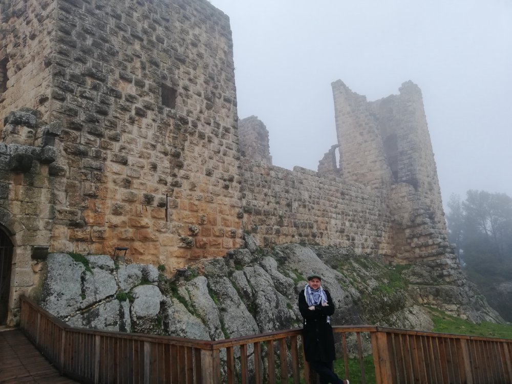 The Saracen Qala'at Ar-Rabad served as Saladin's base as he evicted the Crusaders from Jordan in 1189. Located on the summit of Mount Auf about 1200 meters above sea level the original castle had four towers protected by a moat about 16 meters wide. Its commanding position allows views over Wadi Kufranjah, Wadi Rajeb and Wadi Al-Yabes, as well as over the Jordan Valley and Lake Tiberias, providing an important defensive advantage. It served as a check to the Crusader Belvoir Fort in Israel and was part of the messenger system of beacons and carrier pigeons that carried news from Damascus to Cairo in only one day.