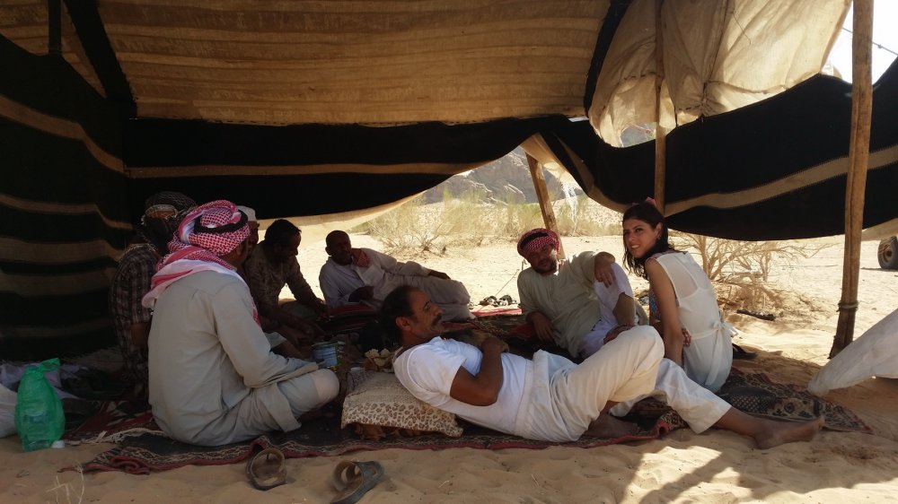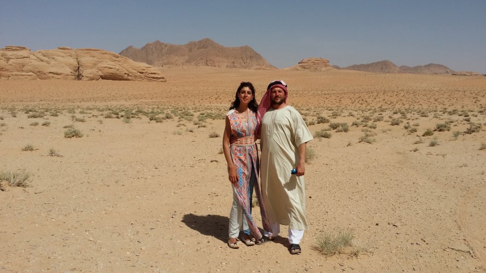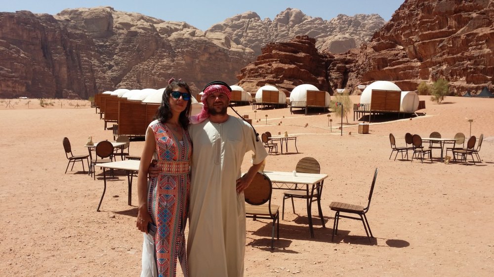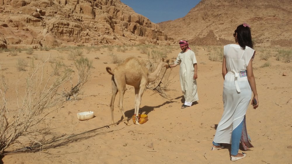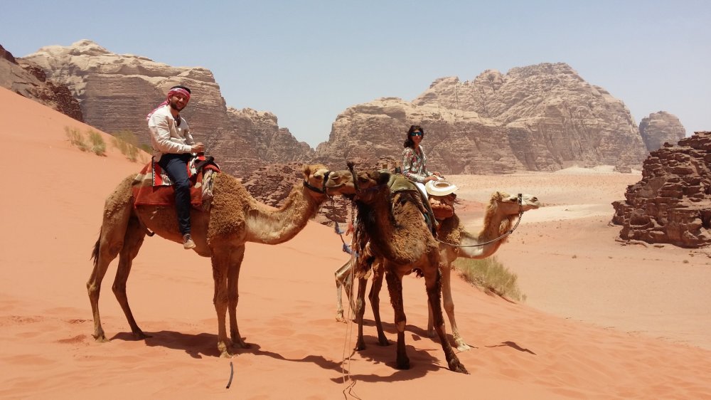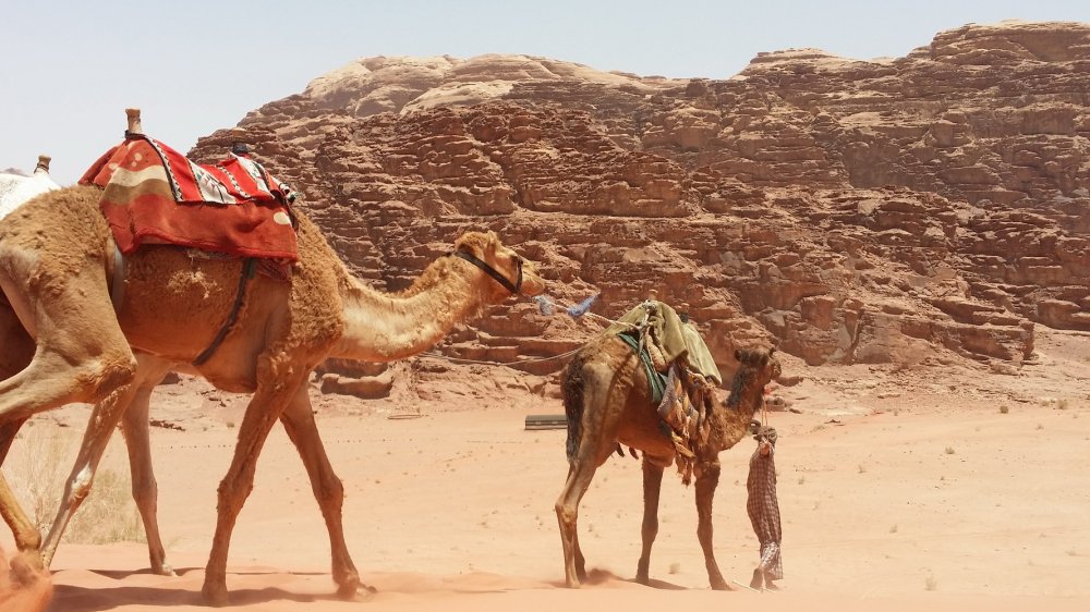 Falling approximately 600 meters from the high plateau of Ras Al-Naqab, Wadi Rum stretches 2 kilometers by 130 kilometers. This series of valleys covered in softly colored sand, punctuated by huge, imposing, fantastically shaped mountains (jabals), is one of the most memorable destinations in Jordan, and has been so since the dawn of time. Deep in the valleys, far from any visible human habitation, it is possible to believe the view has not changed much since the beginnings of human habitation in the Valley of the Moon , approximately 800 BC.